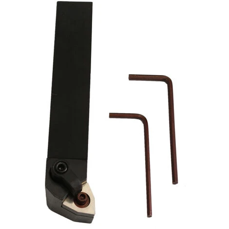 Hier ist ein MWLNR2020K08 Drehmaschine Werkzeughalter, ein Schraubenschlüssel und zehn WNMG080404 Metalleinsätze für die Stahlbearbeitung.