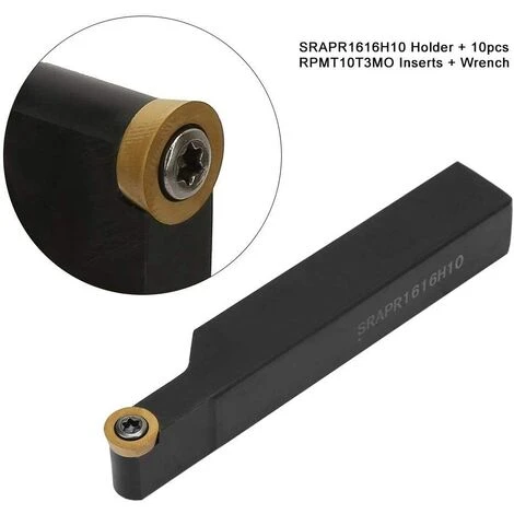 SET – 10 Stück RPMT10T3MO-Einsatzklingen + SRAPR1616H10 Drehwerkzeughalter zum Drehen + 1 Stück Schraubenschlüssel