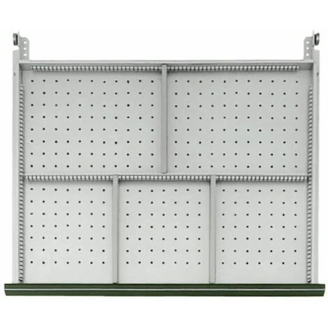 Fachschienen und Fachteiler 5 Fächer Schubladen-Einrichtungsmaterial für Schubladenschrank System 550 S • Anwendung: Zur individuellen Einrichtung und Aufteilung der einzelnen Schubladen im Schubladenschrank System 550 S. • Ausführung: geeignet für die Schubladen-Innenmaße: Breite x Tiefe 600 x 450 mm