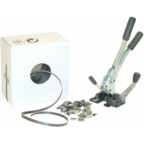 Kunststoff-Umreifungsset • Anwendung: Das Starterset für den Einstieg in die professionelle Verpackung. • Ausführung: Geeignet für Bandbreite 12.7 mm • Lieferung: Umreifungsgerät 13 mm. Kunststoff-Umreifungsband Länge 1000 m. Breite 12.7 mm. Stärke 0.4 mm. Verschlusshülsen (2000 Stück) Länge 28 mm. Breite 13 mm