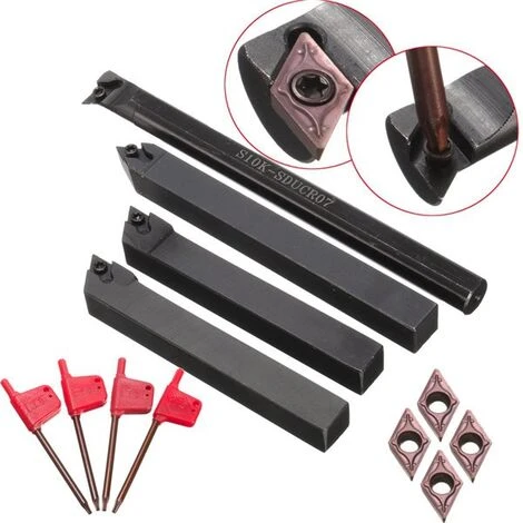 Technische DatenMaterial: 42crModell: S10K-SDUCR07 + SDJCR1010H07 + SDJCL1010H07 + SDNCN1010H07 Schaft D: 10 mm Länge: 100/125 mm Einsätze: DCMT0702 Schlüssel: T8 & # 65288; 83 mm & # 65289; Hinweis:! Öffnen Sie den Werkzeugkasten vorsichtig, berühren Sie ihn nicht vorsichtig! Schutz und Augenschutz vor Gebrauch des Werkzeugs! Tauschen Sie ein Werkzeug aus, wenn Probleme wie Schallvibrationen und Flammen auftreten.
