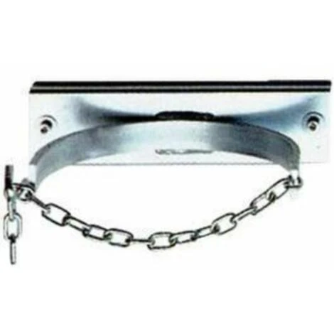 Flaschenwandhalter • Anwendung: Zur Sicherung von stehenden Stahlflaschen. • Ausführung: Stahl verzinktmit SicherungsketteHalterung auf U-Schiene geschweißtmit zwei Bohrungen zur Wandbefestigung