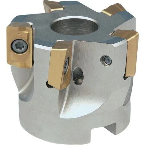 Eckfräser D.50mm vern.m.IK Z.5 APKT…-16 PROMAT 90° · vernickelte Ausführung · mit Innenkühlung · mit ungleicher Teilung für mittlere bis starke Schruppbearbeitung · für Wendeschneidplatte APKT-16 Weitere technische Eigenschaften: · Oberfläche: vernickelt · Wendeplatte: APKT…-16 · D: 50mm · Ø d H7: 22mm · b: 10,4mm · Kühlung: mit Innenkühlung · L: 40mm · d1: 18mm · Ausführung: 50A5R-S90AP16D-C Lieferung inkl. Anzugschraube, Klemmschraube, ohne Schraubendreher (Größe T15)