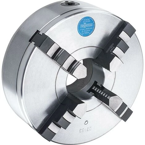 Ausf�hrung: K�rper aus Stahl, mit einteiligen Backen und Spiralring, zentrisch spannend. Anwendung: Zum Einsatz auf Drehmaschinen, Rundtischen, Teilapparaten usw., bei denen hohe Spannkr�fte sowie Rundlaufgenauigkeiten und Wiederholgenauigkeiten erforderlich sind. Lieferumfang: Vierbacken-Drehfutter mit Spannschl�ssel und Befestigungsschrauben, mit je einem Satz nach au�en gestufter Backen (Bohrbacken) und nach innen gestufter Backen (Drehbacken).
