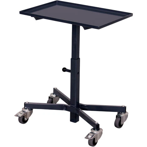 Materialständer, elektrisch ableitfähig (ESD-Bereifung) mit höhenverstellbarer Ladefläche.