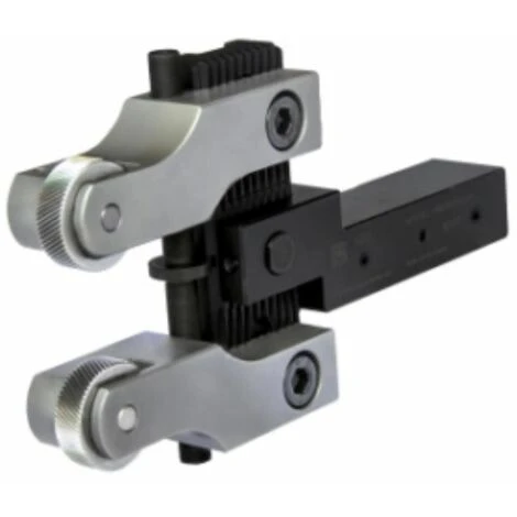 Rändelformwerkeug verstellbar (RD2) zum Rändelformwerk auf Drehmaschinen und Drehautomaten • Anwendung: Zum Rändelformen für Rändelprofile nach DIN 82 RAA, RBL30°/45°, RBR30°/45°, RGE 30° und RGE 45° in den Materialgruppen Stahl, Edelstahl und NE-Metalle. • Ausführung: gehärteter Stahlhalter, Hartmetall-Laufstifte • Vorteil: anwenderfreundliches Einstellen der Arbeitsbereiche durch Synchronspindelzuverlässige Bearbeitung auch bei schwierigen Materialien aufgrund des geringen seitlichen Anpressdruckshohe Verschleißfestigkeit und Lebensdauer • Hinweis: Auf richtige Einstellung der Spitzenhöhe achten!
